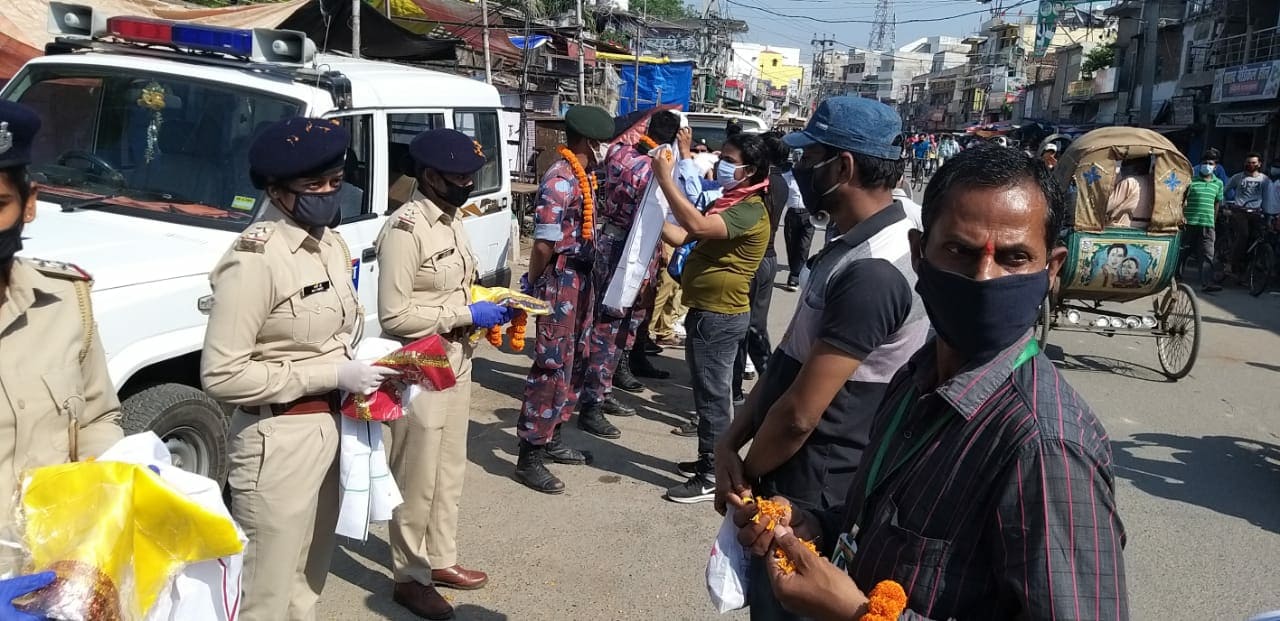 नगर थाना अध्यक्ष अभय कुमार अपनी टीम का नेतृत्व कर रहे थे। संस्था के सदस्य सोशल डिस्टेंसिंग का पालन करते हुए पहले लाइन में खड़े हुए। इन्होंने सभी पुलिसकर्मियों और एनसीसी कैडेट को फूलों की माला पहनाई। फिर अंगवस्त्र दिया और फूलों की वर्षा की। सम्मान पाकर पुलिसकर्मी गदगद नजर आए। सदस्यों के साथ आम जनता ने पुलिस वालों के सम्मान में तालियां बजाईं। कोरोना हारेगा, देश जीतेगा और मोतिहारी पुलिस जिंदाबाद के खूब नारे लगाए। सदस्यों ने पुलिस कर्मियों के साथ-साथ आम लोगों को हैंड सेनेटाइजर उपलब्ध कराया और मास्क भी बांटे।