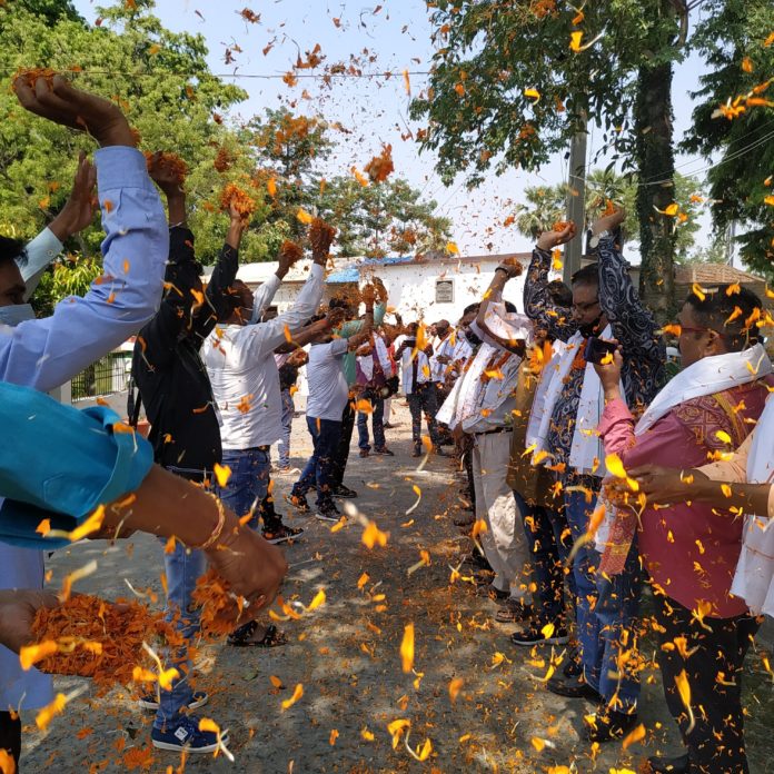 शनिवार को शहर के डाकबंग्ला में ग्रीन एंड क्लीन ने सभी मीडियाकर्मियों को दोपहर 1 बजे आमंत्रित किया। संस्था के संस्थापक अध्यक्ष व नगर पार्षद अमरेंद्र सिंह के नेतृत्व में 30 सदस्यों ने एक सौ से अधिक पत्रकारों और फोटो पत्रकारों को पहले फूलों की माला पहनाई, फिर अंगवस्त्र दिए और उनके सम्मान में फूलों की वर्षा की। इस दौरान बड़ी संख्या में आम लोग उपस्थित थे। सभी ने पत्रकारों के सम्मान में खूब तालियां बजाईं। ‘कोरोना हारेगा, देश जीतेगा’, ‘मीडियाकर्मी जिंदाबाद’ के खूब नारे लगे।