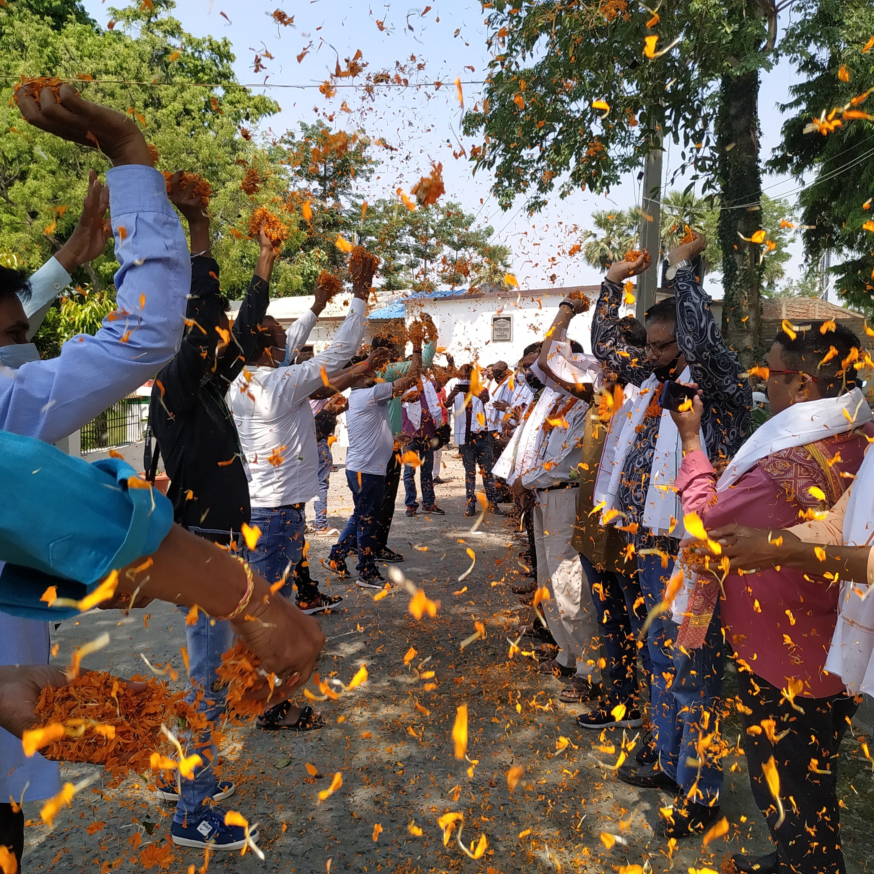 उधर मुफस्सिल थाना में इंस्पेक्टर आनंद कुमार  सहित सभी पुलिसकर्मियों और छतौनी स्थित क्वारंटाइन सेंटर में ड्यूटी पर मौजूद सभी डाॅक्टरों और कर्मचारियों को सम्मानित किया गया। उन्हें माला पहनाई गई, अंगवस्त्र दिए गए और पुष्प वर्षा की गई।
