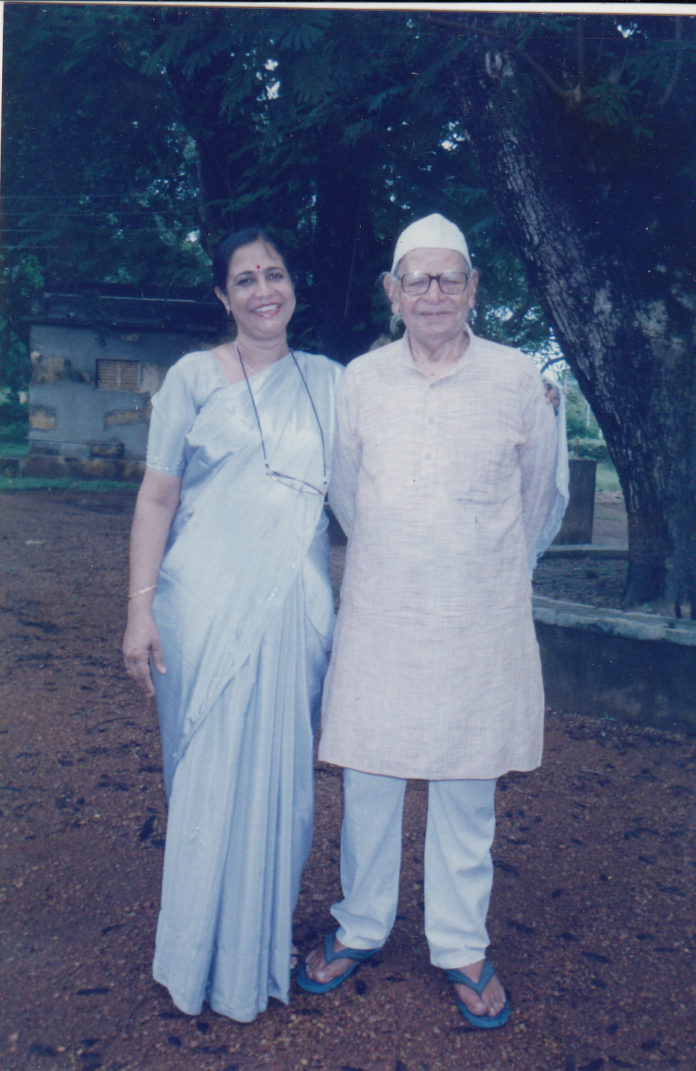 शांतिनिकेतन में आवारा मसीहा के मशहूर लेखक विष्णु प्रभाकर के साथ लेखिका रति सक्सेना।