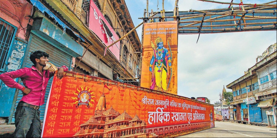 अयोध्या में राम जन्मभूमि में विराजमान रामलला के मंदिर के निर्माण कार्य का शुभारंभ करने आ रहे प्रधानमंत्री नरेंद्र मोदी के आने से पहले अयोध्या ‘राममय’ हो गई है। हर तरफ पीले रंग से सजे घरों और मंदिरों के भवन अयोध्या में आस्था के नए सूर्योदय का संकेत दे रहे हैं।